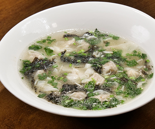 5加入紫菜、蔥花、香菜,即可出鍋裝盤。